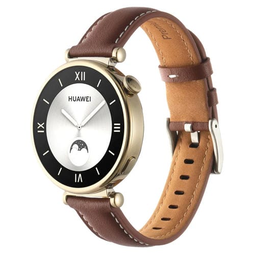 Correa de Reloj de Cuero para Huawei Watch GT4 41mm 18mm con Hebilla de Hilo (Marrón Oscuro)