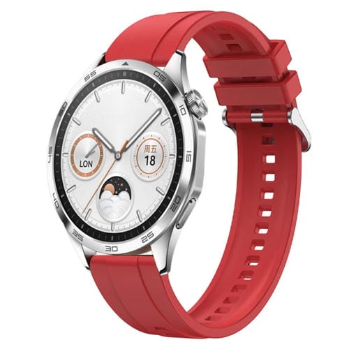 Correa de Silicona para Huawei Watch GT4 46mm con Patrón de Neumático y Hebilla Plateada (Rojo)