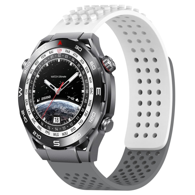 Correa de Silicona para Huawei Watch Ultimate con Puntos 3D Transpirables y Orificios de 22mm (Blanco + Gris)