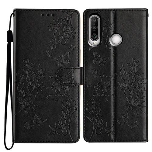 Funda de Cuero para Huawei Y6P Butterfly Love Flower en Relieve (Negro)