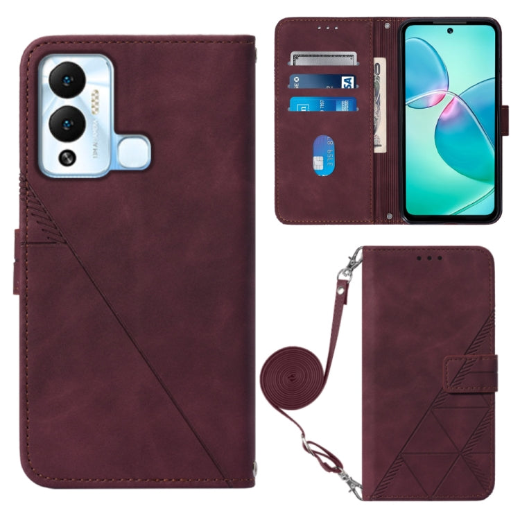 Funda de Cuero Crossbody 3D con Tapa para Infinix Hot 12 Play / 12 Play Nfc (Rojo Vino)