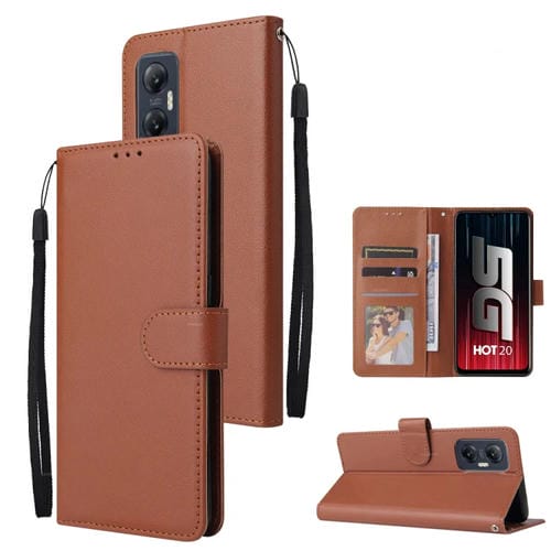 Funda de Cuero Multifuncional para Infinix Hot 20 5G con 3 Ranuras para Tarjetas (Marrón)