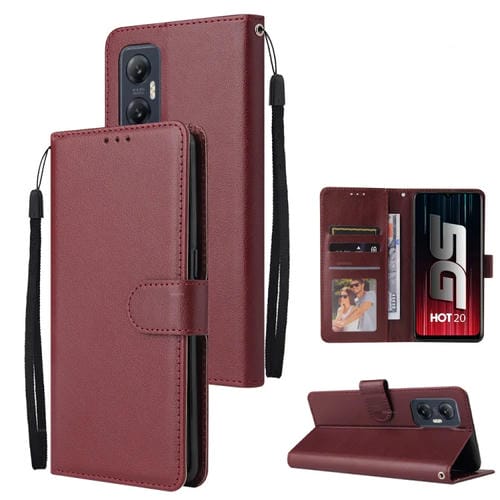 Funda de Cuero para Infinix Hot 20 5G con 3 Ranuras para Tarjetas (Rojo Vino)