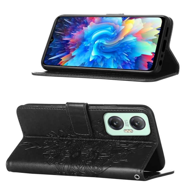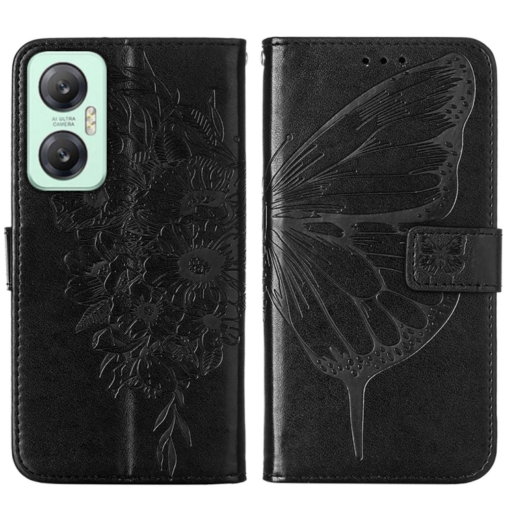Estuche de Cuero para Infinix Hot 20 5G X666 / X66B con Tapa de Mariposa en Relieve (Negro)