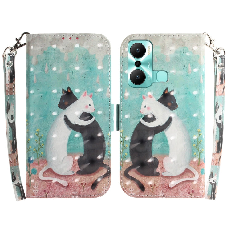 Funda para Infinix Hot 20 Play con Tapa de Cuero y Patrón 3D (Gato Blanco y Negro)