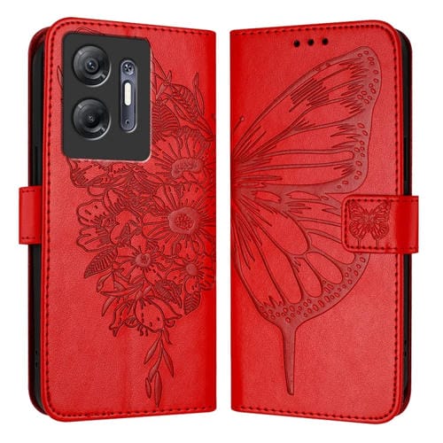 Funda de Cuero para Infinix Hot 30 5G con Mariposa en Relieve (Rojo)