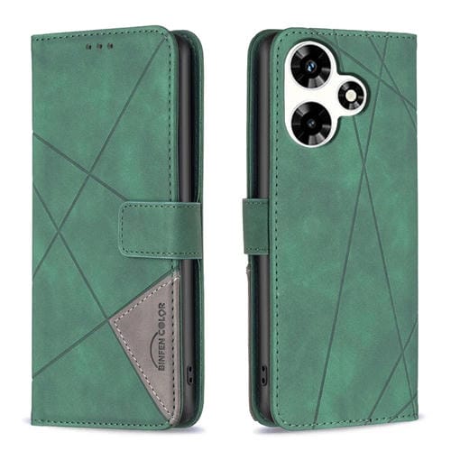 Funda para Infinix Hot 30 de Cuero con Textura de Rombo y Hebilla Magnética (Verde)