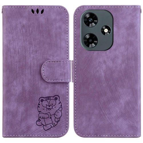 Funda de Cuero En Relieve para Infinix Hot 30 Little Tiger (Púrpura)
