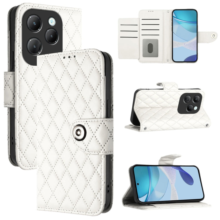 Funda para Infinix Hot 40 y Hot 40 Pro de Cuero con Tapa Textura Rómbica y Cordón (Blanco)