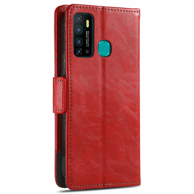 Funda para Infinix Hot 9 Caseno Business Empalme Dual Hebilla Magnética Horizontal Flip PU Cuero con Soporte y Ranuras (Rojo)
