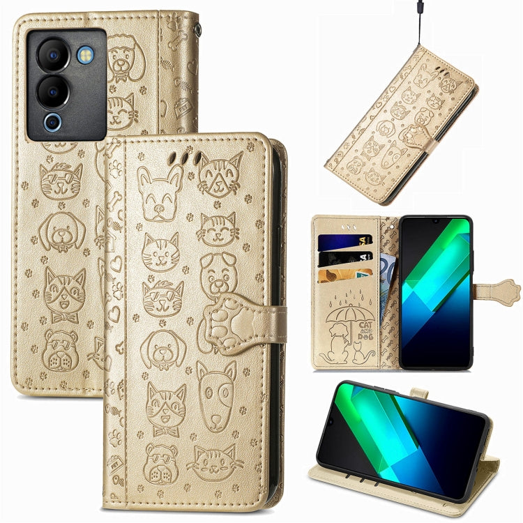 Funda de Cuero para Infinix Note 12 G96 Cat And Dog con Relieve (Oro)