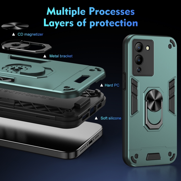 Funda para Infinix Note 12 G96 con Soporte de Anillo de Metal a Prueba de Golpes (Verde)