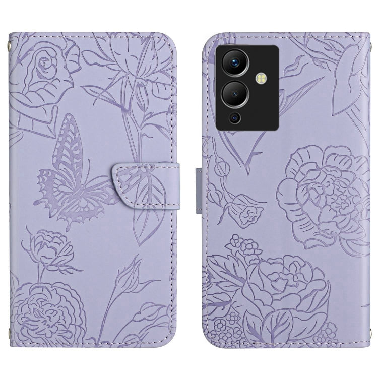 Funda de Cuero para Infinix Note 12 G96 Ht03 Skin Feel Butterfly con Tapa en Relieve (Púrpura)