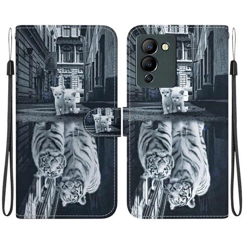 Funda de Cuero para Infinix Note 12 G96 X670 con Dibujo Coloreado y Textura de Cristal (Reflejo de Tigre Gato)