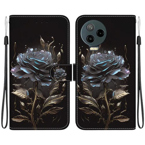 Funda de Cuero para Infinix Note 12 Pro 4G con Dibujo Coloreado y Textura de Cristal (Rosa Negra)