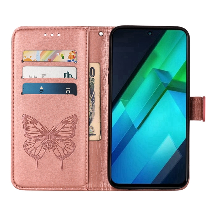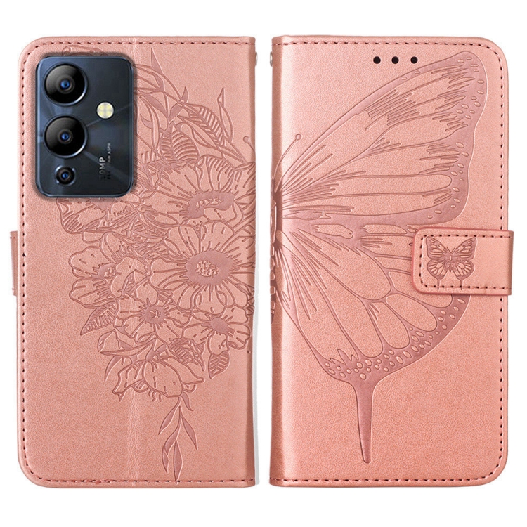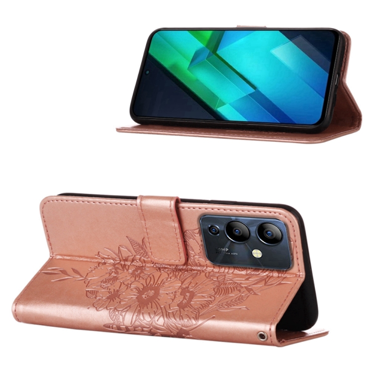 Estuche para Teléfono Infinix Note 12I 2023 G85 Cuero Mariposa en Relieve (Oro Rosa)
