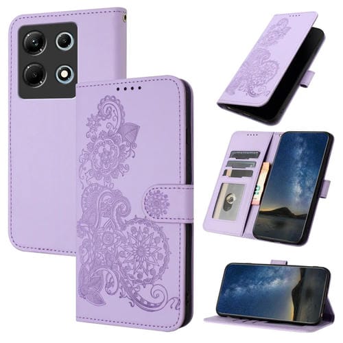 Funda de Cuero para Infinix Note 30 4G Datura Flower con Tapa en Relieve (Púrpura)