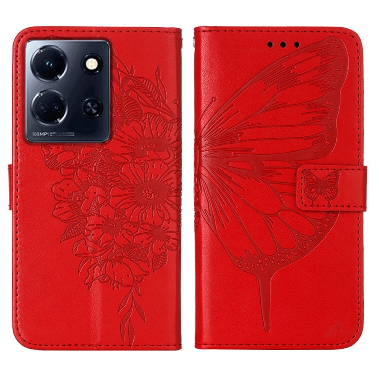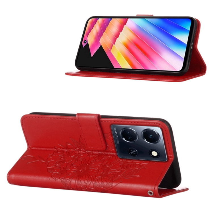 Estuche para Teléfono Infinix Note 30 5G X6711 Cuero con Mariposa en Relieve (Rojo)