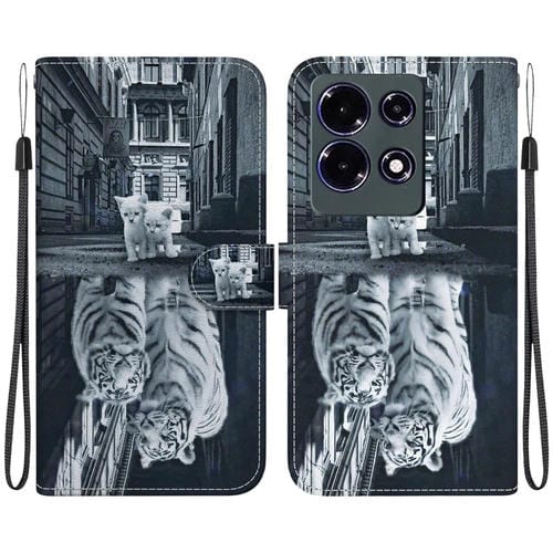 Funda de Cuero para Infinix Note 30 con Dibujo Coloreado y Textura de Cristal (Reflejo de Tigre Gato)