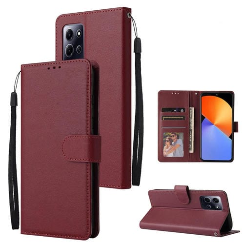 Funda para Infinix Note 30I de Cuero Multifuncional con 3 Ranuras para Tarjetas (Rojo Vino)