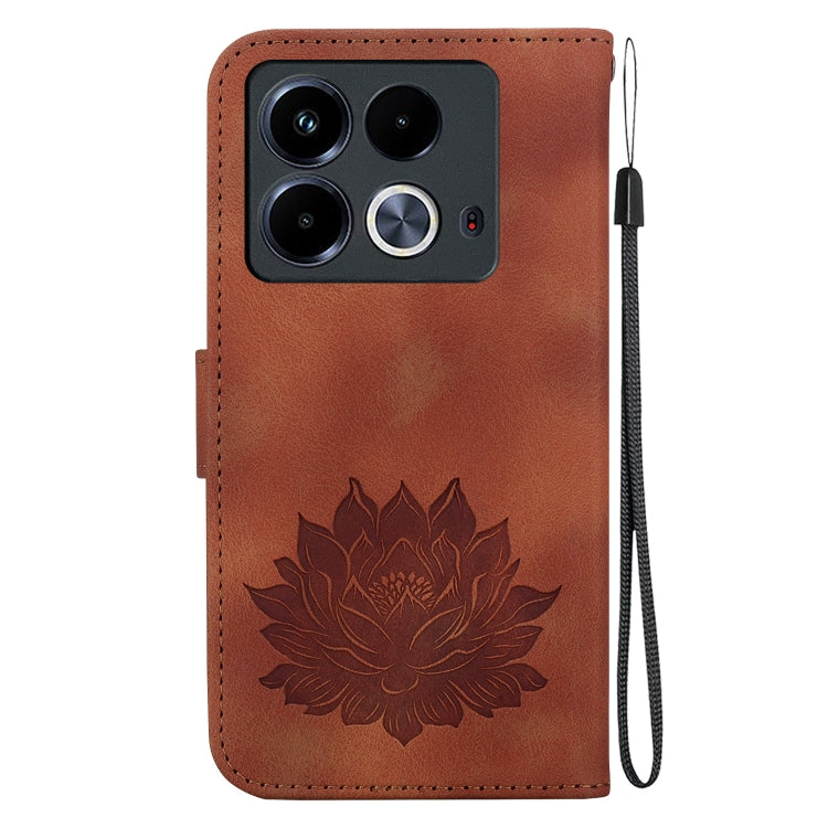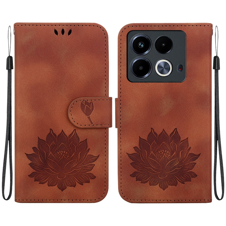 Funda de Cuero En Relieve para Infinix Note 40 4G Lotus (Marrón)