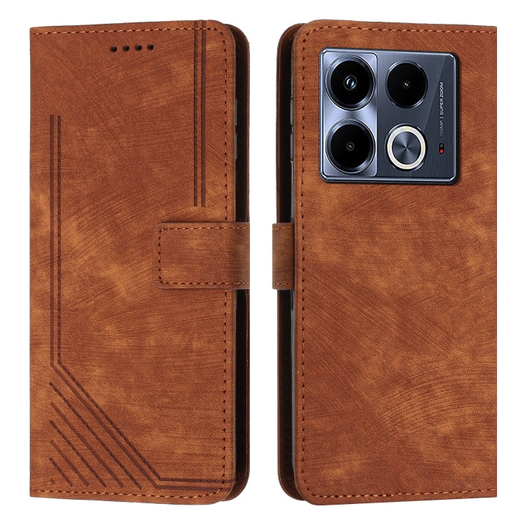 Funda de Cuero para Infinix Note 40 5G con Patrón de Rayas y Cordón (Marrón)