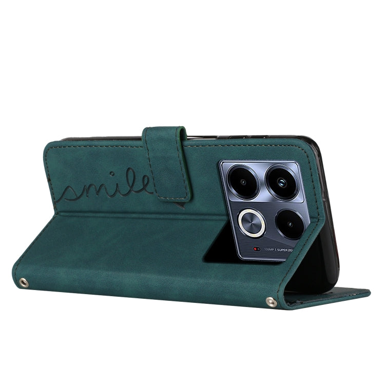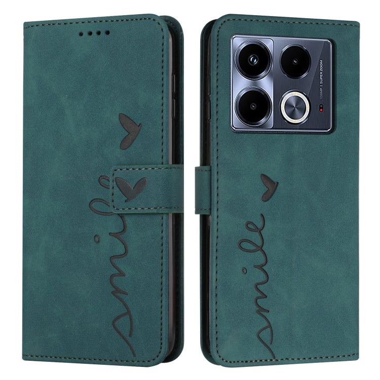 Funda para Infinix Note 40 5G Skin Feel Heart de Cuero en Relieve con Cordón Largo (Verde)