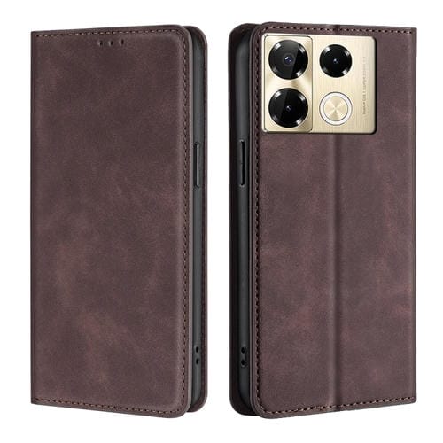 Funda de Cuero Magnética Skin Feel para Infinix Note 40 Pro 4G (Marrón Oscuro)