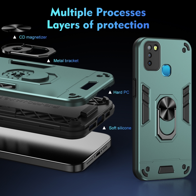 Funda para Infinix Smart 5 con Soporte de Anillo de Metal y Protección a Prueba de Golpes (Verde)