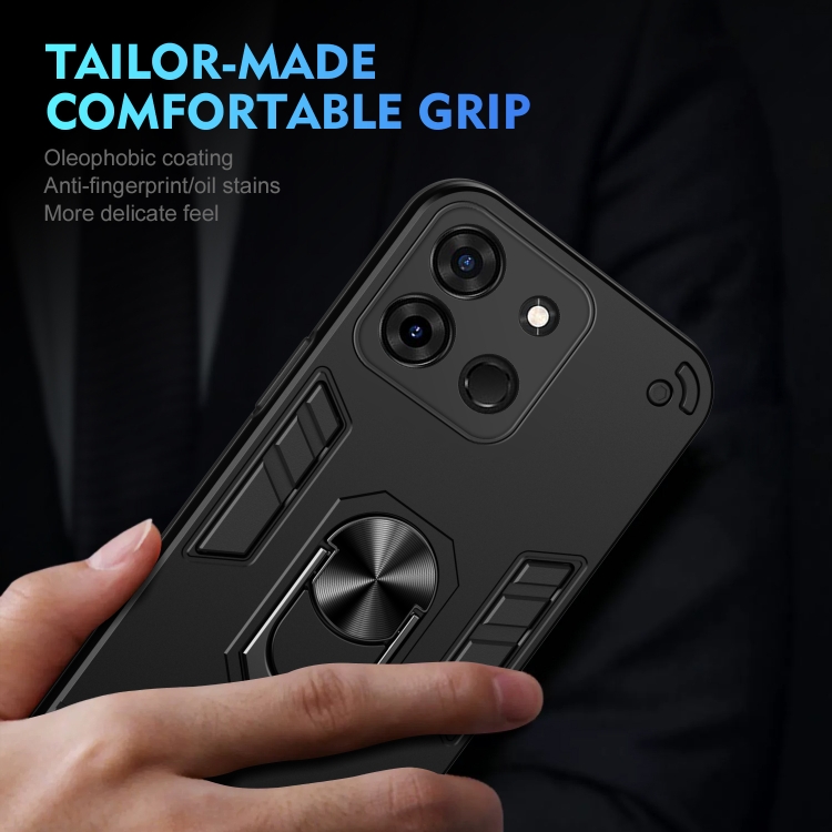 Funda para Infinix Smart 7 con Soporte de Anillo de Metal a Prueba de Golpes (Negro)