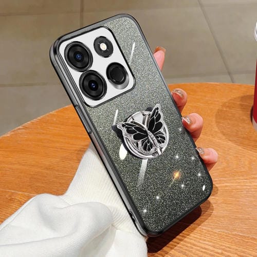 Funda TPU para Infinix Smart 7 con Soporte de Mariposa y Brillo Degradado (Negro)