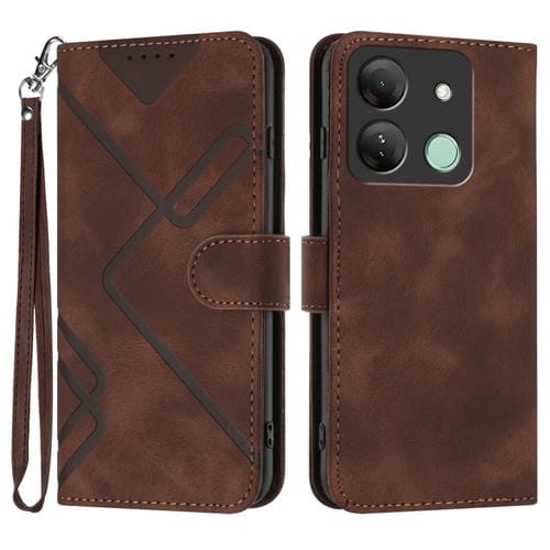 Funda de Cuero para Infinix Smart 7 HD con Textura Line Pattern Skin Feel (Café)