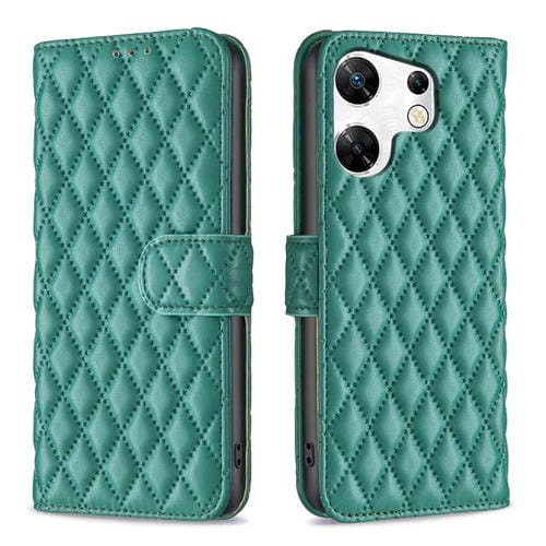 Funda de Cuero con Tapa para Infinix Zero 30 4G Diamond Lattice (Verde)