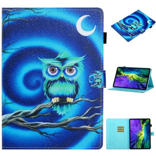 Funda de Cuero Inteligente para iPad Pro 11 (2024) con Costuras y Dibujos a Color (Moon Owl)