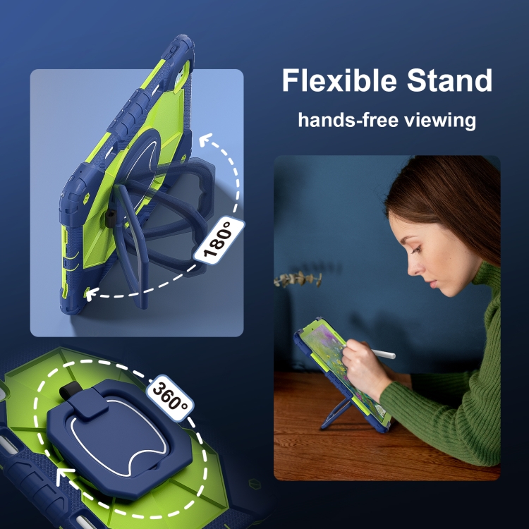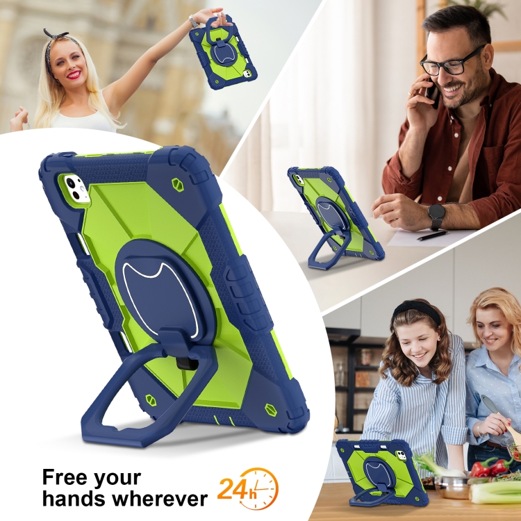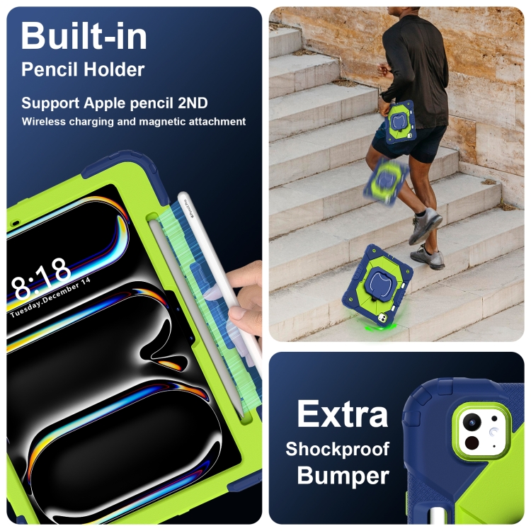 Funda híbrida silicona diseño robot para iPad Pro 11 (2024) (Azul Marino, Amarillo y Verde)