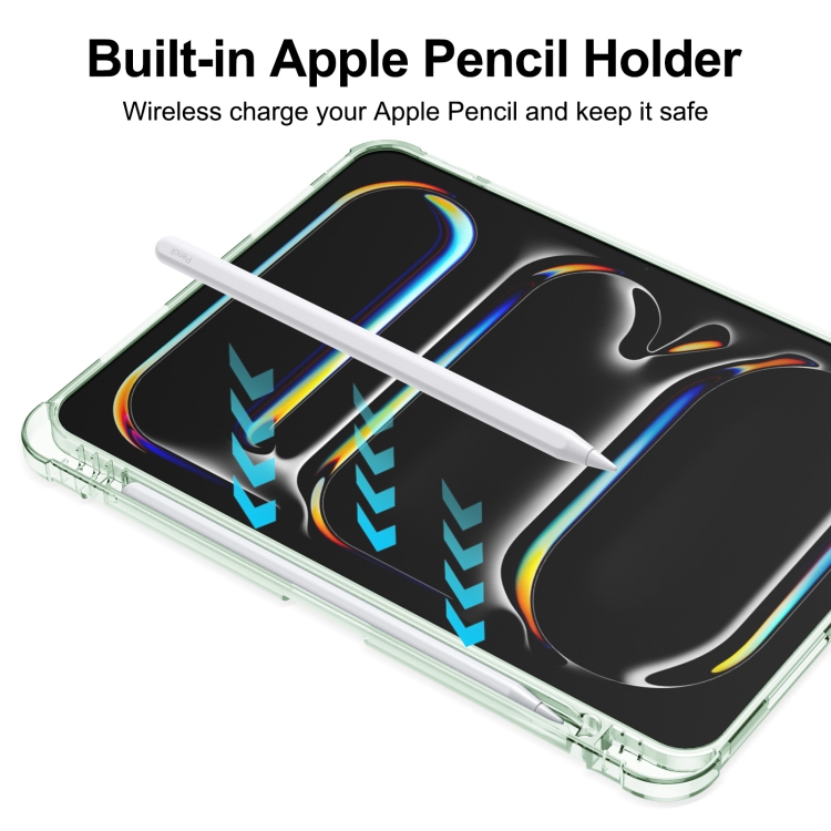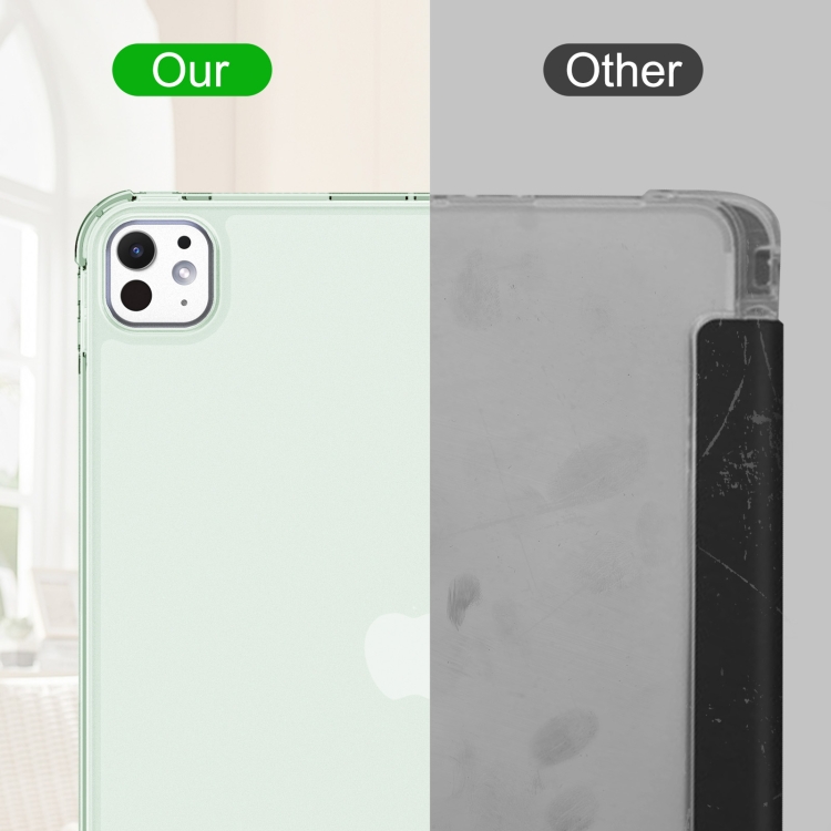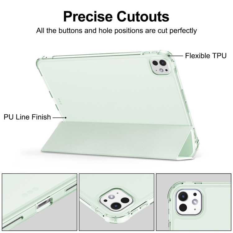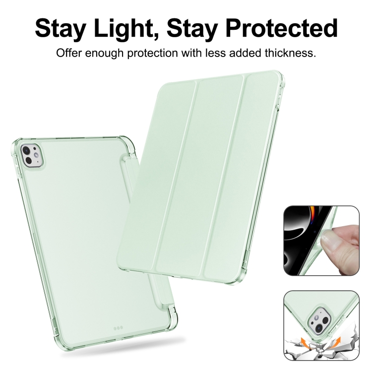 Funda para iPad Pro 11 (2024) TPU Tres Pliegues Cuero Esmerilado Ranura Bolígrafo (Verde Claro)