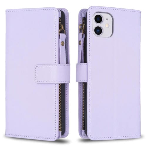 Funda Cartera iPhone 11 9 Ranuras Tarjetas Cremallera Cuero con Tapa (Morado Claro)