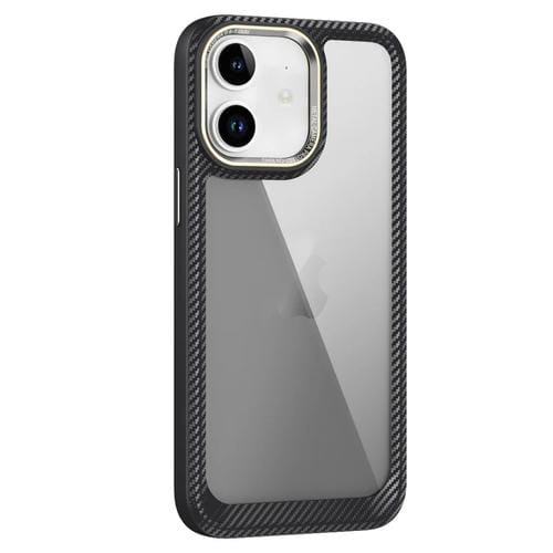 Caja de teléfono iPhone 11 con panel posterior Transparente de fibra de carbono (Negro + Negro Transparente)