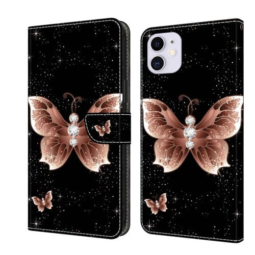 Funda Protectora para iPhone 11 Crystal 3D Cuero a Prueba de Golpes (Mariposa de Diamante Rosa)