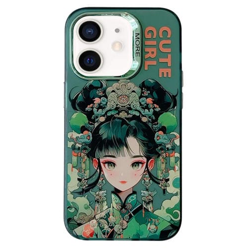 Caja para iPhone 11 Estilo Antiguo Chino Lente Galvanizada Anillo PC Híbrido TPU (Verde)