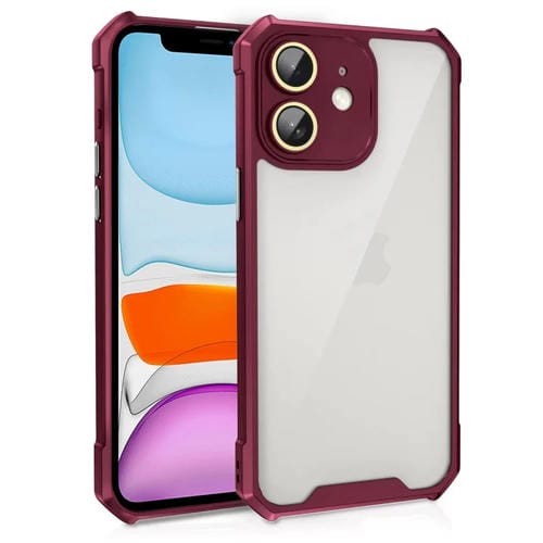 Estuche Acrílico para iPhone 11 a Prueba de Golpes con Película de Vidrio para Lentes (Rojo Vino)
