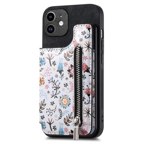 Estuche para Teléfono iPhone 11 con Billetera con Cremallera Pintada Retro (Negro)