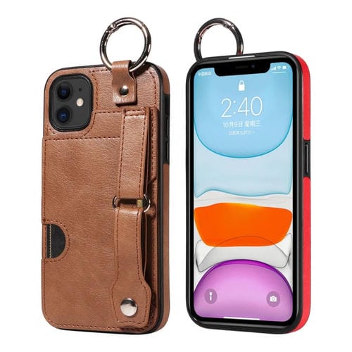 Funda para Teléfono iPhone 11 con Anillo y Ranura para Tarjeta Textura de Pantorrilla (Marrón)