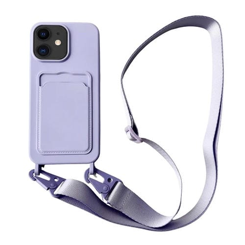 Funda para Teléfono iPhone 11 Silicona Líquida Ranura para Tarjeta y Cordón (Púrpura Claro)