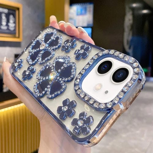Funda para Teléfono TPU iPhone 11 con Diamantes y Flores Galvanizadas (Azul)