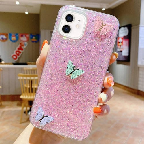 Funda para Teléfono TPU Epoxi iPhone 11 con Lentejuelas Estrelladas y Diamantes de Imitación (Rosa)