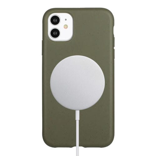 Funda para Teléfono iPhone 11 Material de Paja Magnético Magsafe de Trigo y TPU (Verde Militar)