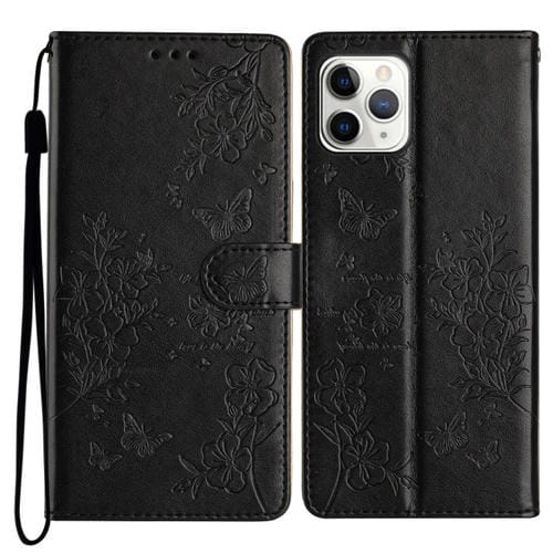 Funda para iPhone 11 Pro Butterfly Love Flower Cuero En Relieve (Negro)