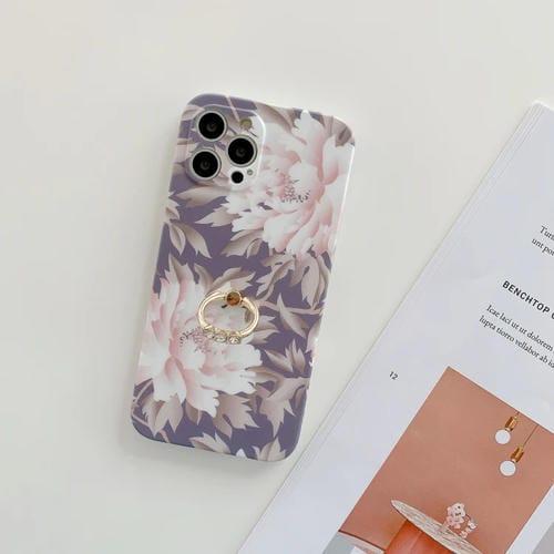 Funda TPU iPhone 11 Pro Flasted Flowers Patrón IMD con Titular Anillo de Diamante de Metal (Gris)