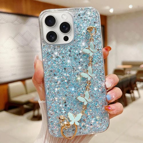 Funda para Teléfono iPhone 11 Pro TPU Epoxi Cadena Mariposa Lentejuelas Estrelladas (Azul)